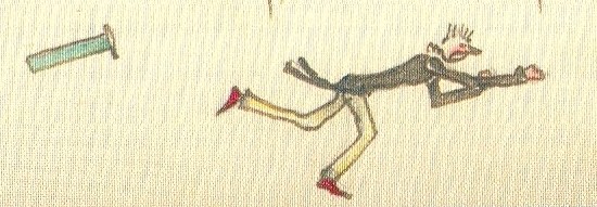 În desen, sergentul Boffin se mulțumește să spună: „Ce! El stă sus pe deal!” și binks țipă, iar oamenii ies să vadă ce se petrece. Îl vedeți pe Sam, băiatul cel mare al lui Boffin, care își cheamă prietenii să vină și să-l vadă pe tatăl lui trântindu-l pe bătrânul Binks la pământ. Frizerul și măcelarul sunt și ei de față; cizmarul (din casa de alături) trage cu ochiul; unchiul Joe e în ușă, cu ochelarii pe nas, doamna Golighly stă în picioare cu un pachet în mână și s-a întrerupt din discuția cu doamna Simkins, bătrânul Gaffer Gamgee încearcă din răsputeri să audă ceva, elegantul Alfred afișează un aer superior, mai e cineva la o altă fereastră și încă un copil sau doi.